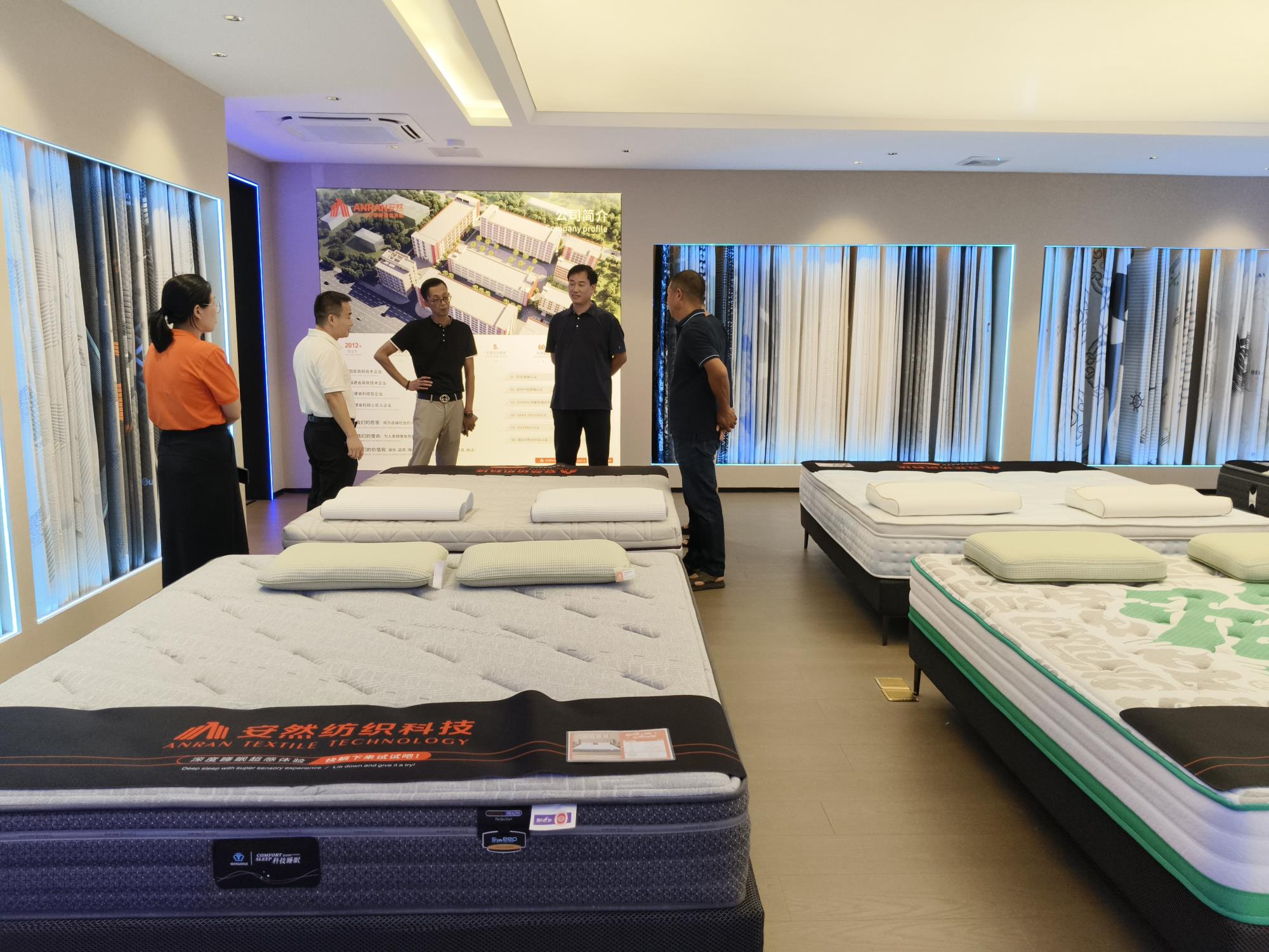 More >福建省安然紡織科技有限公司成立于2012年,注冊資金5888萬元,廠區(qū)占地200畝,建筑面積20萬平米,現(xiàn)有員工500多人,主要致力于3D材料、3D面料、針織提花面料、床墊、枕頭、軟床、沙發(fā)、餐桌椅等系列產(chǎn)品的研發(fā)、生產(chǎn)及銷售,是一家擁有自營進出口權的國家高新技術企業(yè),產(chǎn)品遠銷國內(nèi)外。